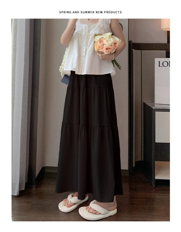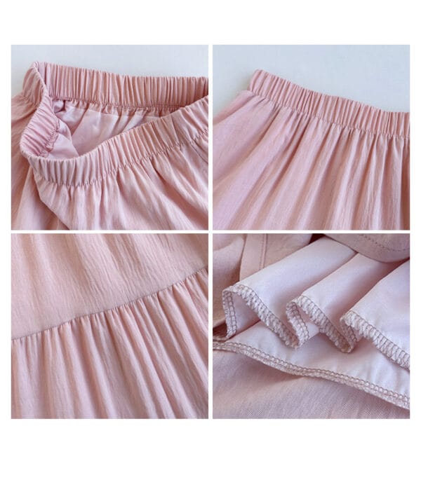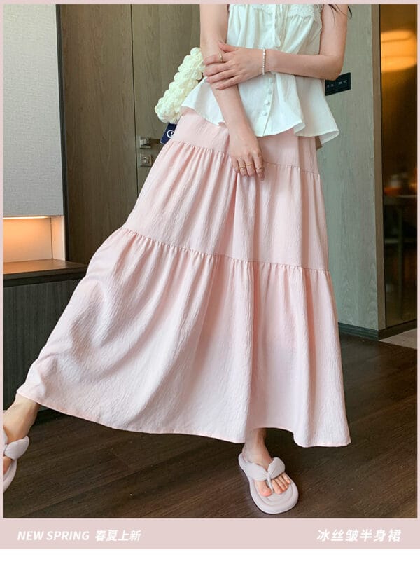 تنورة طويلة بكسرات ناعمة، قماش خفيف ومريح، بتصميم عملي وأنيق يناسب الإطلالات اليومية. متوفرة بثلاثة ألوان: أبيض سكري، وردي، وأسود. الطول 165 سم،