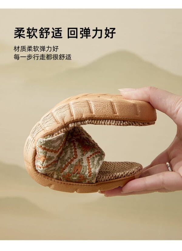 صُنعت بعناية من خامات طبيعية تشبه الخوص الناعم، مع شريط علوي متقاطع بنقوش هندسية مطرزة يدوياً تعكس روح التراث والدفء.