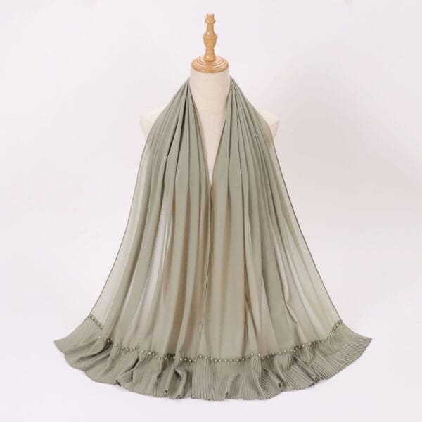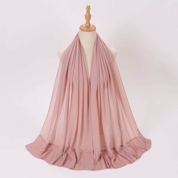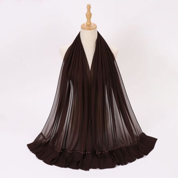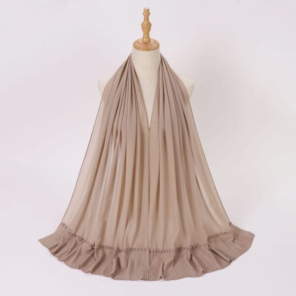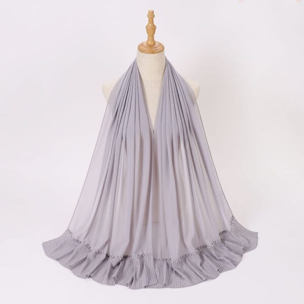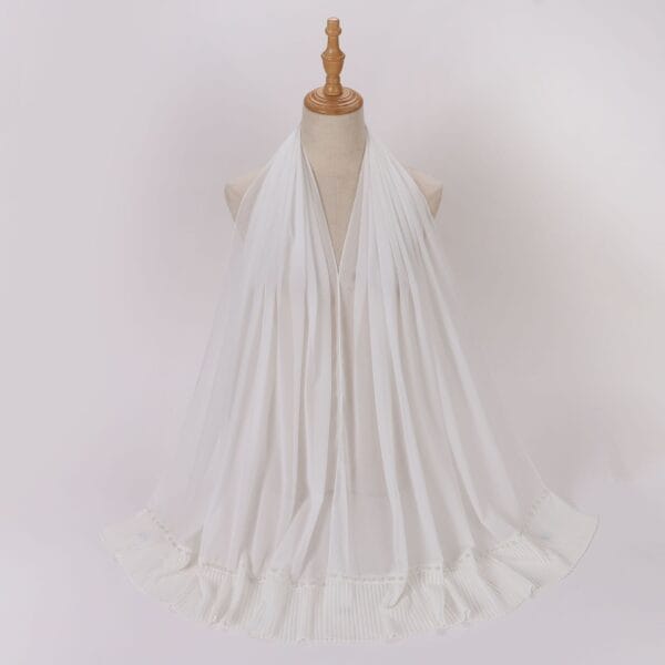 مجموعة من الشالات النسائية الأنيقة، مصممة بعناية وأناقة عالية. الشالات مصنوعة من قماش ناعم وخفيف، مع تصميم مطوي (بليسيه) في الأطراف، ومزينة بخط من اللؤلؤ الصغير لإضفاء لمسة راقية وأنثوية.
