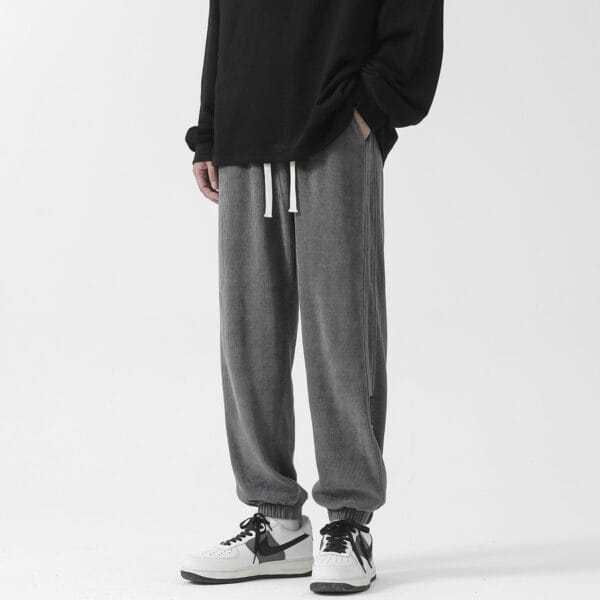 بنطال كاجوال مخملي مميز بتصميم عصري واسع، مصنوع من قماش كوردروي فاخر (مخملي مخطط) يوفر راحة وأناقة في آنٍ واحد. يتميز برباط خصر مرن قابل للتعديل، مع أرجل تنتهي بإسورة مطاطية لثبات مثالي. مثالي للارتداء اليومي أو الإطلالات المريحة.