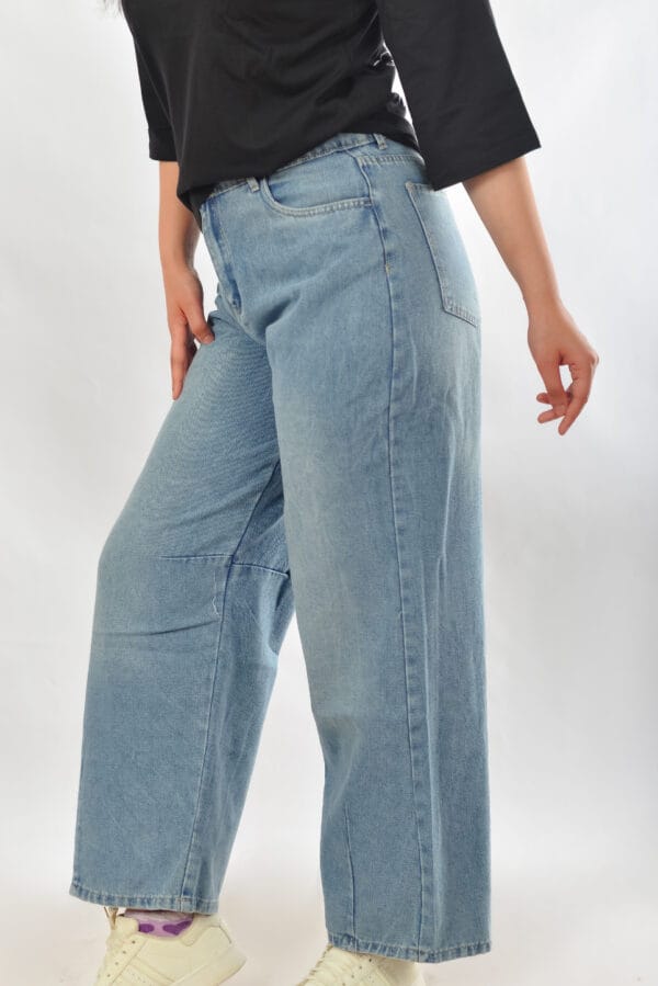 بنطلون جينز واسع بستايل كاجوال مريح، تصميم هاي ويست (High Waist) بيفضي شكل أنيق وعملي. خامة الدنيم عالية الجودة بتدي مرونة ومتانة، مناسب للإطلالات اليومية مع تيشيرت أو كيمونو، وكمان مثالي للستايل العصري المحتشم.