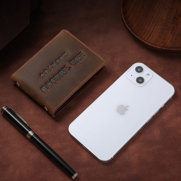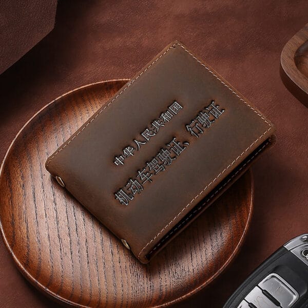 محفظة جلدية بنية بتصميم فريد مستوحى من الثقافة الشرقية، تتميز بنقش تنينين متقابلين داخل إطار بيضاوي. يرمز التنين إلى القوة والحماية، مما يمنح هذه المحفظة طابعًا مهيبًا وفخامة لافتة. الجلد المستخدم ذو ملمس ناعم ومظهر معتق يعزز من جاذبيتها، بينما يضمن التصميم العمودي تنظيمًا عمليًا للمحتويات.