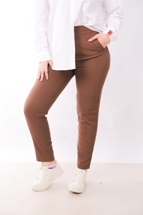Elegant women’s pants made of soft, stretchable fabric Designed with a clean, zipper-free front for extra comfort. Ideal for both formal and casual looks, offering a sleek fit and freedom of movement.