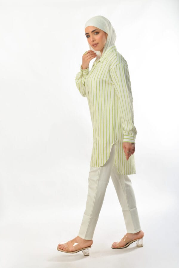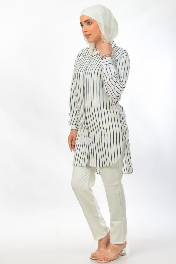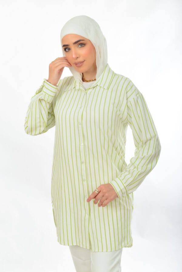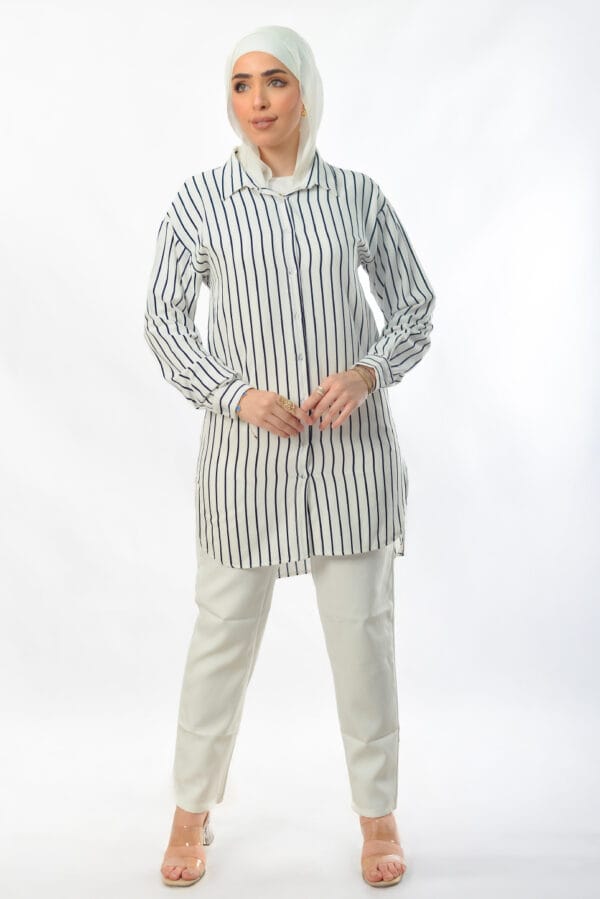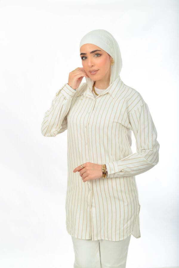 اختاري الإطلالة المثالية مع هذا القميص الفضفاض المصنوع من قماش الكريب الناعم والخفيف، الذي يضمن لكِ التهوية والراحة طوال اليوم. يتميز بتصميم كلاسيكي بأزرار أمامية، ما يجعله قطعة أساسية في خزانة كل محجبة تبحث عن الأناقة والبساطة في آنٍ واحد.
