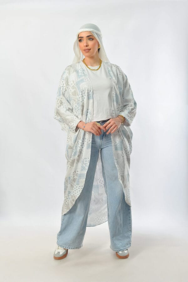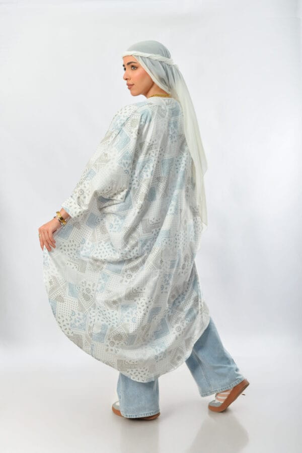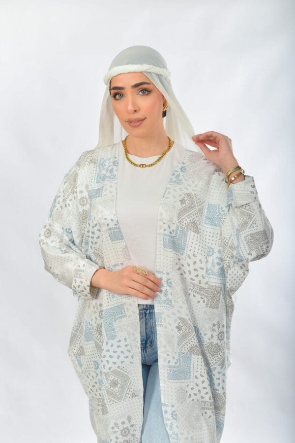 كاردي مفتوح أنيق بنقشات فنية هادئة وألوان ناعمة تمنحكِ لمسة راقية، مثالي لتنسيق يومي عصري مع جينز أو فستان بسيط.