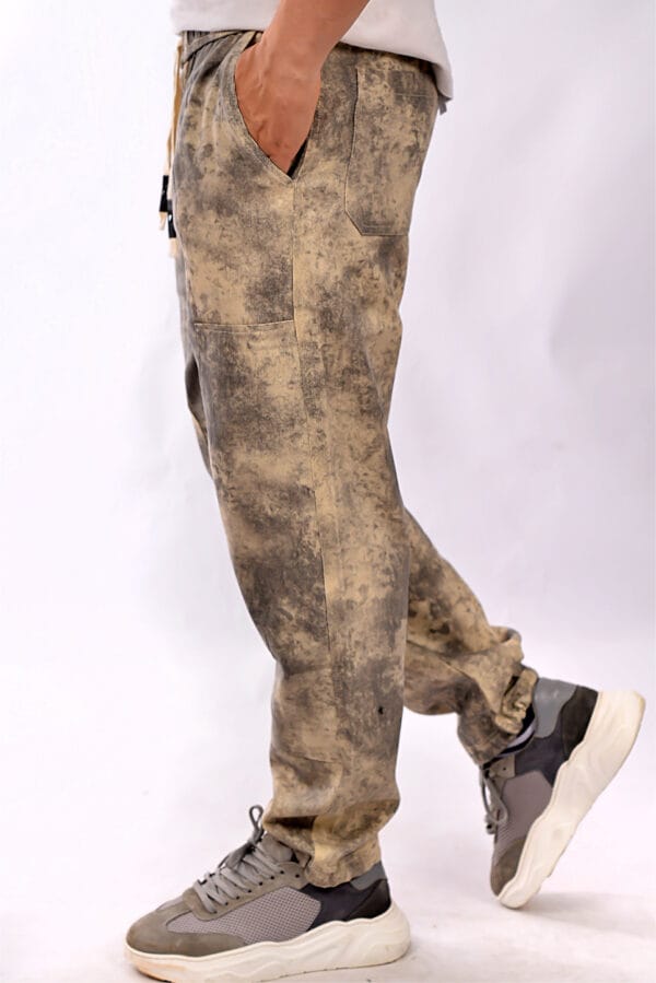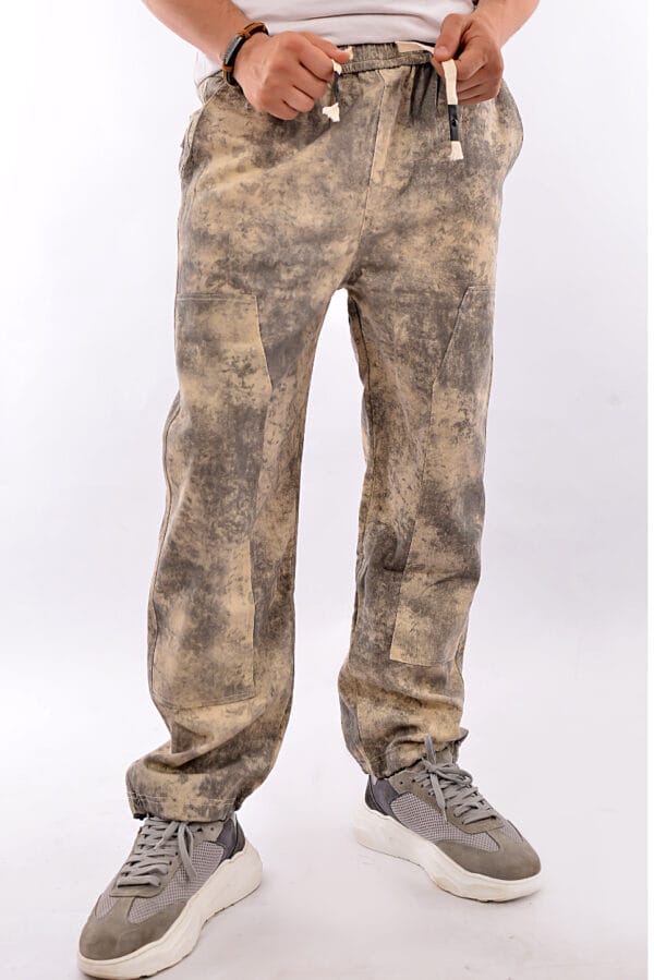 بنطلون RustCore الجديد. يتميز بتصميم فريد من نوعه بنقشة “تاي داي” باللونين البني والرمادي لإطلالة عصرية وجريئة. مصنوع من قماش عالي الجودة يمنحك راحة ومرونة طوال اليوم، مع خصر مطاطي بحبل قابل للتعديل. يحتوي على جيوب جانبية عملية وتصميم أنيق يجعل هذا البنطلون خيارًا مثاليًا للنشاطات اليومية أو الإطلالات العصرية في الشارع.