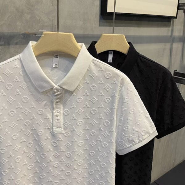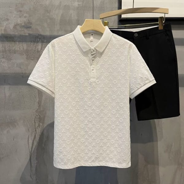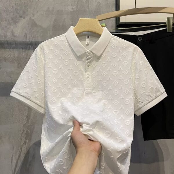 تيشيرت “كلاسي لوكس” الرجالي بتصميم بولو فاخر، باللون الأنيق والمطرز بنقشة بارزة (إمبوسد) مستوحاة من رموز الماركات العالمية، ليمنحك إطلالة راقية بلمسة عصرية.