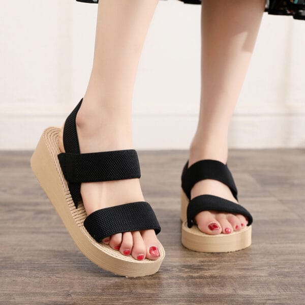 صندل نسائي أنيق بلون بيج فاتح، تصميم عملي ومريح مع نعل عالي خفيف الوزن يمنحكِ ارتفاعًا بسيطًا مع ثبات وراحة. يتميز بخامة شبكية ناعمة تسمح بتهوية القدم، وأشرطة مرنة لتثبيت أفضل دون ضغط. مثالي للمشاوير اليومية والأجواء الصيفية.