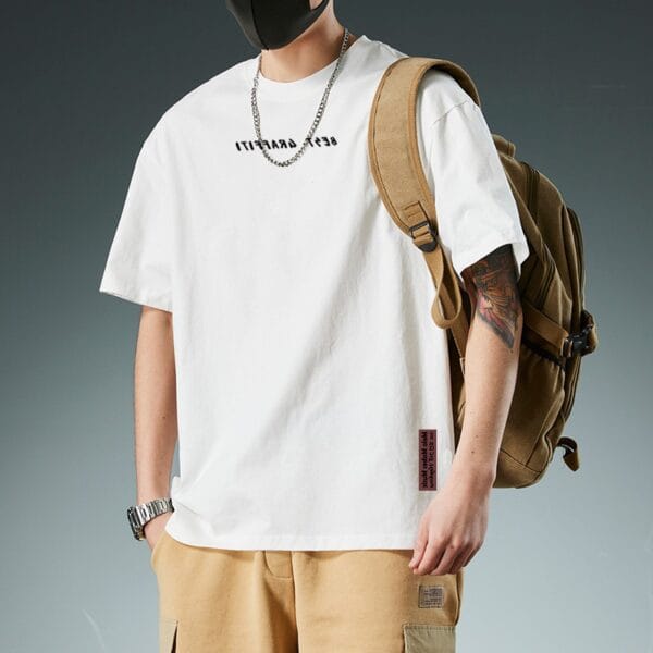تيشيرت يتميز بقصة مريحة وتصميم مطبوع بشكل مقلوب على الصدر لإطلالة فريدة وعصرية. مثالي لمحبي الأسلوب الكاجوال مع لمسة ستايل مميزة.
