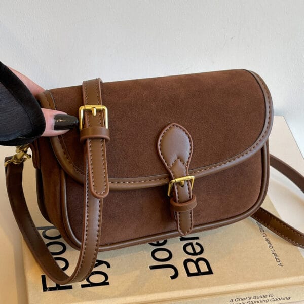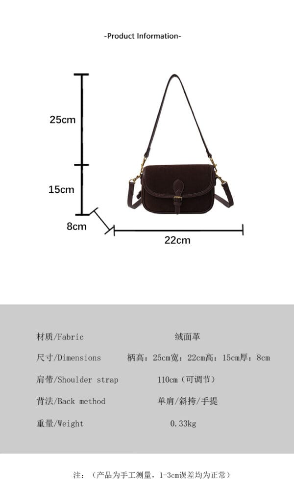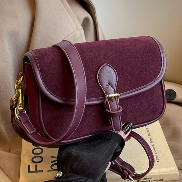 شنطة كتف أنيقة مصممة من خامة مخملية فاخرة، تتميز بتفاصيل جلدية فنية تضيف لمسة راقية. تأتي بتصميم غطاء أمامي مزود بإبزيم صغير للزينة، مع حزام كتف طويل قابل للتعديل والتغيير بتركيبة معدنية فاخرة. الحجم مثالي للاستخدام اليومي، وتمنحك مظهراً أنثوياً عصرياً سواء في الإطلالات الكاجوال أو الرسمية.