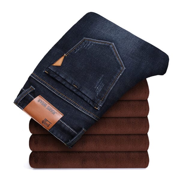 بنطال جينز رجالي عملي مبطّن بطبقة داخلية ناعمة تمنح دفئاً مضاعفاً في الأيام الباردة. تصميم كلاسيكي بجيوب خلفية أنيقة وتفاصيل خياطة دقيقة تعزز من المتانة والشكل العصري. مثالي للارتداء اليومي في الشتاء مع راحة وحماية إضافية.
